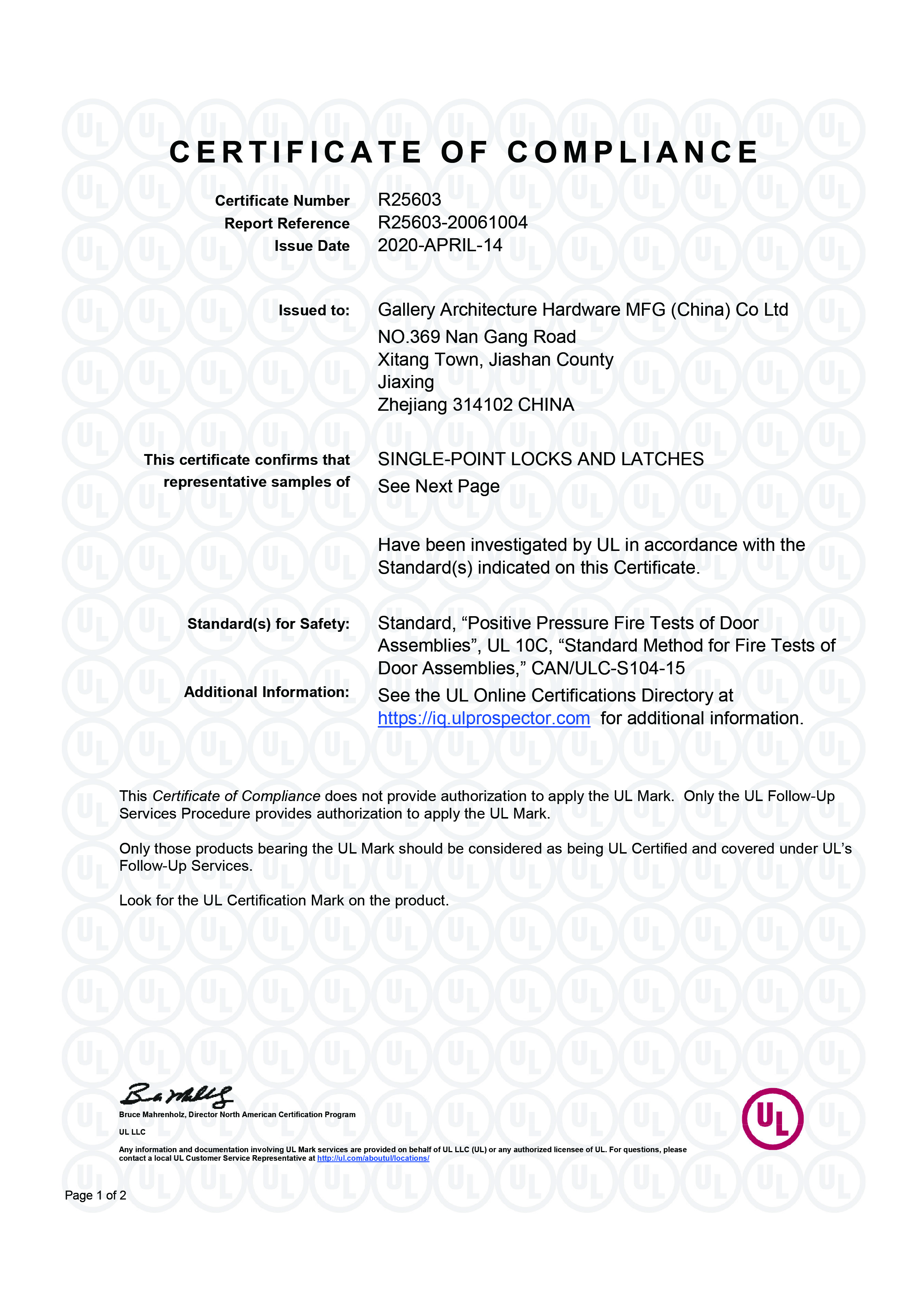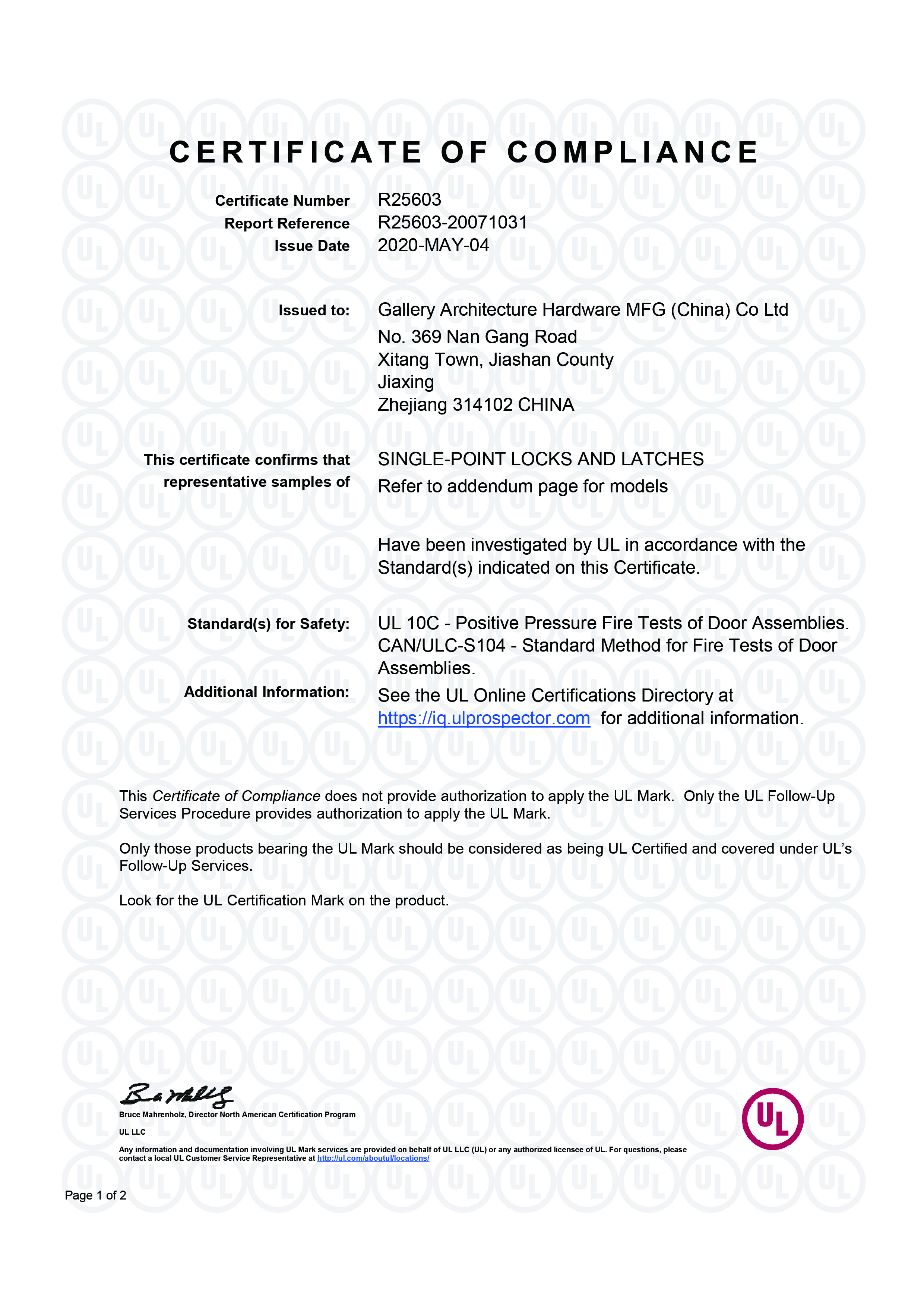 浙江堅迪五金制造有限公司始建于 1995 年。自 2003 開始,公司致力于高標準商業鎖的研發(fā)工作,并于 2006 及 2007 年,8700 插芯鎖系列獲得美國國家標準 ANSI A 156.13-2005 一級、ANSI A 156.2-2003 二級和美國 UL 10C3 小時防火測試認證。自 1998 年以來,公司不斷提升產品和客戶服務品質,并獲得了 ISO 9001 的認證。